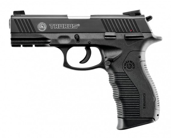 A Pistola Taurus PT 845 conta com armação em polímero, sistema de disparo com cão, ação simples e dupla e miras noturnas com trítio.